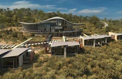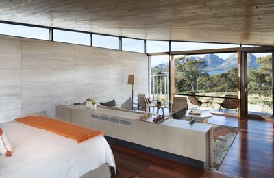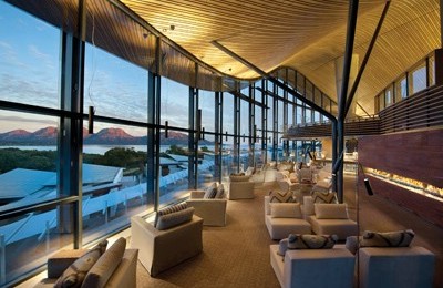 Um auf einer Linie mit der Natur zu bleiben, hat das mit Auszeichnungen prämierte Architektenteam rund um Morris Nunn so viel als möglich mit organischen Materialien der Region gearbeitet - unter anderem mit rosafarbenem Granit der Hazards Berge. Auch das Erscheinungsbild des Resorts ist an die Umgebung angepasst. So soll das Dach des Hauptgebäudes an die Gipfel der Hazards erinnern, das aus Tasmanischen Bäumen errichtet wurde.