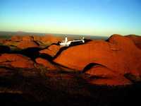 Kurz vor Sonnenaufgang beginnt Ihre Tour zum Uluru (Ayers Rock) Beobachten Sie den Sonnenaufgang im Licht der aufgehenden Sonne und genießen Sie ein Picknick-Frühstück im Outback.
