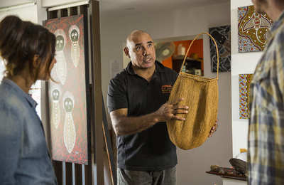 Sie werden von Ihrer Unterkunft in Cairns abgeholt. Erleben Sie die tropische Landschaft, während Sie nach Norden, nach Port Douglas und dann weiter zur Mossman Gorge fahren. Hier besuchen Sie die Janbal Gallery für einen Malkurs mit dem Aborigine-Künstler Brian Binna' Swindley. Erfahren Sie, wie Geschichten durch Aborigine-Gemälde erzählt werden, und malen Sie selbst ein Bild auf Leinwand zum nehmen. Binna führt Sie durch ihre Maltechniken und teilt Dreamtime-Geschichten über Tiere, Umwelt und Sprache.