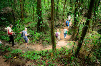 Anschließend Fahrt durch das Shannonvale Valley. In der Mossman Gorge werden Sie mit einer traditionellen Raucherzeremonie begrüßt, die von Aborigines mit speziellen Kulturkenntnissen durchgeführt wird, um Menschen in ihrem Land willkommen zu heißen. Genießen Sie anschließend ein köstliches Mittagessen mit lokalen Aromen, die im Mossman Gorge Mayi Cafe serviert werden. Ein Muss für jeden Besucher der Mossman Gorge sind die Ngadiku Dreamtime Walks, die von den einheimischen Indigenen durchgeführt werden. Ngadiku (Nar-di-gul) bedeutet Geschichten und Legenden aus einer langen Zeit in der lokalen Kuku Yalanji Sprache. Der Spaziergang schlängelt sich dann durch atemberaubenden Regenwald. Ihr erfahrener, indigener Guide zeigt Ihnen die traditionelle Nutzung verschiedener Pflanzenarten, identifiziert Buschnahrungsquellen und in kleinen Geschichten berichtet er über den Regenwald und die besondere Beziehung der Aborigines . Ihr Führer zeigt Ihnen auch die Herstellung von Buschseifen und Ockermalerei. Am Ende der Tour genießen Sie einen traditionellen Buschtee und Damper. Ihr Entdeckungstag endet mit der Rückkehr zu Ihrer Unterkunft in Cairns.