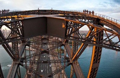 Gönnen Sie sich ein unvergessliches Erlebnis und besteigen Sie die Sydney Harbour Bridge. Ausgerüstet mit einem "Bridge-Anzug", einem Kopfhörer mit Mikrophon und einem Sicherheitsgurt mit Karabinerhaken, erklimmen Sie in einer kleinen Gruppe die circa 130 Meter hohe Sydney Harbour Bridge. Die Tour dauert drei Stunden und wird unter fachkundiger Leitung durchgeführt. Genießen Sie den Ausblick aus 130m Höhe über den Hafen, die Oper und die Skyline der Stadt. Bitte tragen Sie festes Schuhwerk oder Turnschuhe! Sie werden einen Anzug mit Sicherheitsleine über Ihrer Kleidung tragen. Ein professioneller Führer nimmt Sie mit auf die 1932 gebaute Brücke für einen spektakulären Blick über Sydney und seinem riesigen Hafen. Mindestalter 12 Jahre. Vorbehaltlich Wetteränderungen.