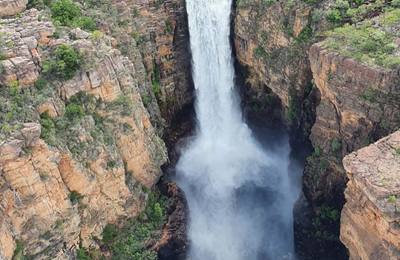 Von Darwin fliegen Sie zunächst in westliche Richtung und Sie sehen aus der Vogelperspektive die Flusssysteme des Adelaide-, West-, South und East-Alligator River. Große Felsformationen mit Steilhängen wechseln sich mit weitläufigen Schwemmland und Küstenmangrovengebieten ab. Schließlich überfliegen Sie die spektakulären Jim Jim- und Twin Waterfalls, bevor Sie landen und an der beliebten Yello Water Lagunen-Bootstour teilnehmen. Eine einzigartige Möglichkeit Krokodile, Wasserbüffel und eine vielfältige Vogel- und Pflanzenwelt zu entdecken.