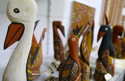 Morgens setzen Sie mit der Fähre von der Cullen Bay Marina in Darwin nach Bathurst Island über (ca. 2 Std.). . Nach der Ankunft in der Aborigine-Gemeinde Wurrumiyanga auf Bathurst Island werden Sie zu Tiwi Design gebracht, wo lokale Künstler und Tänzer ein formelles Welcome to Country mit einer Raucherzeremonie und Totemtänzen aufführen werden.