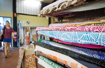 Nach einer Pause und einem Mittagessen im Schatten ist es an der Zeit, Tiwi Design noch einmal zu besuchen und an einer exklusiven Siebdruckwerkstatt "hinter den Kulissen" teilzunehmen. Wählen Sie aus modernem oder traditionellem Tiwi-Design, um auf ein T-Shirt, Geschirrtuch oder Stoff zu drucken - ein wunderbares Souvenir Ihres Tiwi-Besuchs.