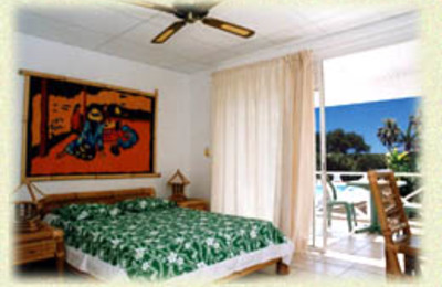 Zimmer: Insgesamt verfügt die Anlage über 16 Zimmer, zum Teil mit Klimaanlage und Kitchenette. Die Zimmer sind sehr geräumig und komfortabel eingerichtet im polynesischen Stil. Sie haben die Wahl in Ihrer Unterkunft zu kochen oder auswärts Essen zu gehen in nahegelegenen Restaurants, welche sich in Gehreichweite der Pension befinden.