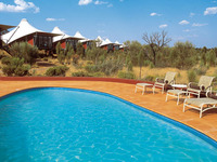 Auf einer isolierten Düne kommt die Luxus-Zeltlodge zum Vorschein und erstreckt sich mitten im australischen Outback. Von hier aus lässt sich der allabendliche Sonnenuntergang in herrlicher Kulisse am Ayers Rock genießen, der nur 8 km entfernt liegt.