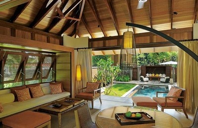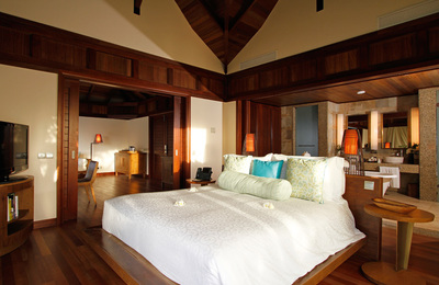 Beach Villa (370 m2): Alle Beach Villen liegen direkt am North Beach. Jede, der mit zwei Schlafzimmern ausgestatteten Villen, ist großzügig und stilvoll eingerichtet mit geräumigem En-Suite Badezimmer, privatem Swimming Pool und einer überdachten Terrasse. Zudem bieten die Villen einen LCD Fernseher, MacMini Entertainmentsystem (iPod Anschluss, integrierter CD/DVD Spieler), kostenfreien WIFI-Internetzugang, Minibar, Weinklimaschrank mit einer Auswahl an Weinen, Tee-/ Kaffeezubereitungsmöglichkeit sowie ein Kissenmenü.