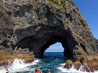 Erleben Sie die schönen Bay of Islands an Board eines Luxuskatamarans.Die Fahrt führt Sie vorbei an strahlendweißen Stränden und wunderschönen Buchten und weiter zur Motukokako Island und zum berühmten "Hole in the Rock" - das Loch im Fels, wo das Schiff hindurch zum Grand Cathedrale Cove steuert.