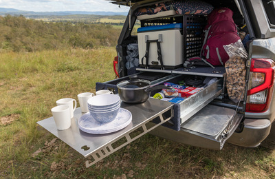 - 86 L Kaltwassertank, tragbarer Gaskocher, 75 L Kühlschrank, ausziehbare Vorbereitungsfläche für Speisen, 300 W Solarmodul, 270° Markise
